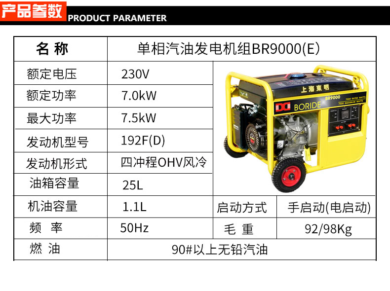 * 表示必填采購:單相7kW小型汽油發(fā)電機組 BR9000(E)