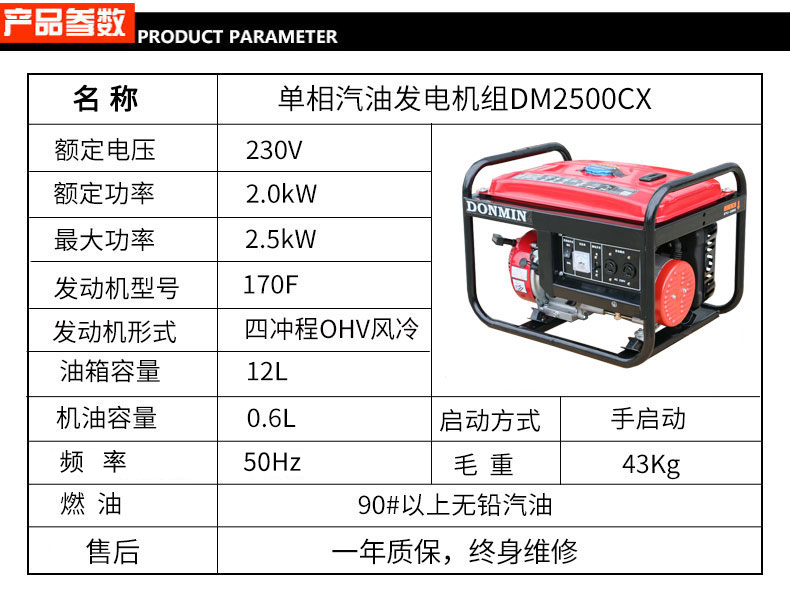 單缸汽油發(fā)電機(jī)DM2500CX