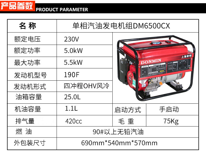 * 表示必填采購(gòu):?jiǎn)蜗?5kW小型汽油發(fā)電機(jī)組 DM6500CX手動(dòng)