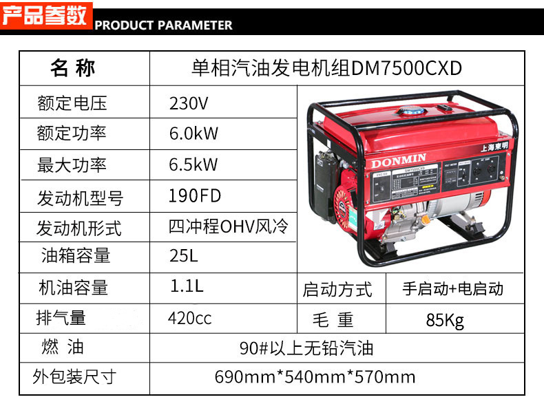 * 表示必填采購:單相6kW小型汽油發(fā)電機組【可配備移動輪】DM7500CXD