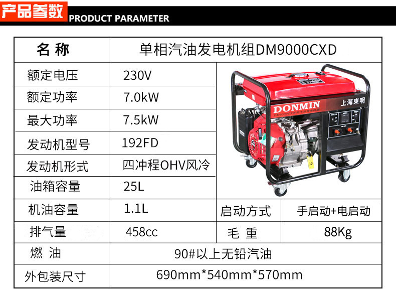 * 表示必填采購:單相7kW小型汽油發(fā)電機(jī)組DM9000CXD